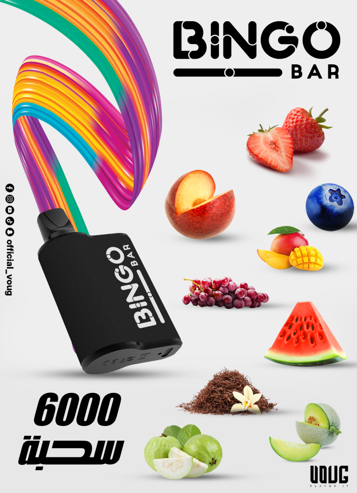 إلى كل من يسعون للحصول على الراحة القصوى والتمتع طويل الأمد ومرونة إعادة الشحن ، بينجو بار هو الخيار المثالي. يتميز الجهاز القابل لإعادة الشحن 6000 سحبة رائعًة، ويضمن تجربة فايب تدوم. يجمع البينجو بار بين الحرفية عالية الجودة والتصميم الأنيق، مما يجعله ليس فقط متعة في الاستخدام ولكن أيضاً منتجاً عصرياً. مع 11 نكهات مغرية للاختيار من بينها، تقدم كل سحبة دفعة مرضية من النكهة ستجعلك تعود للحصول على المزيد. ما عليك سوى الاسترخاء والاستنشاق والاستمتاع بالنكهات المثيرة التي يقدمها بينجو بار. عندما تنخفض طاقة البطارية في النهاية، يمكنك بسهولة إعادة شحن بينجو بار بسهولة، لضمان متعة فايب دون انقطاع. جرب المزيج المثالي من الراحة والأناقة والتمتع طويل الأمد مع بينجو بار !
